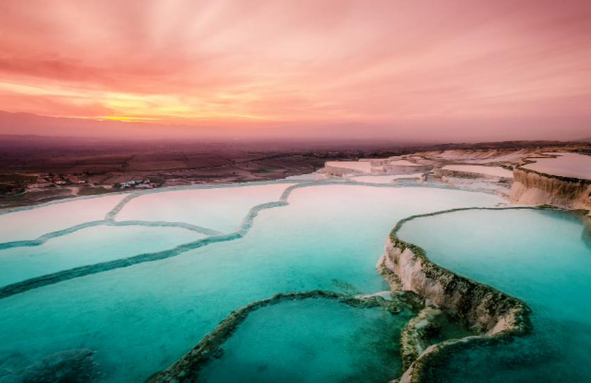 로마 황제도 보양하러 왔다는 온천지 '파묵칼레'. 파묵칼레 상단에 있는 '히에라폴리스 유적'과 함께 세계유산으로 등재되어 있습니다.