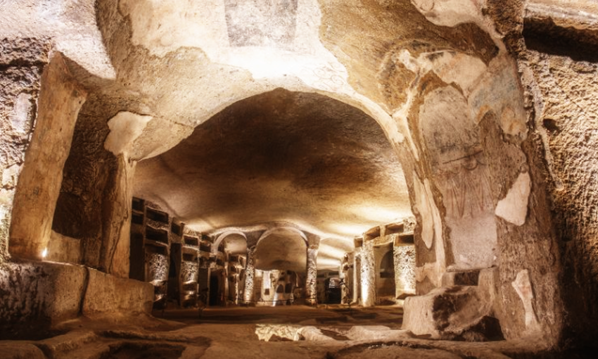나폴리 중심에서 조금 떨어진 곳에 위치한 나폴리의 지하묘지 카타콤베. 발을 디디면 독특한 신성한 분위기가 물씬 풍겨 신비로운 감각에 빠집니다.카타콘베는 카포디몬테 언덕으로 이어지는 언덕길 중간에 있으며 바위산을 도려낸 구멍에는 벽화와 초상화가 남아 있습니다. 매시간 버스투어가 있어 버스로 가야하지만 시간을 들여서라도 갈만한 관광지로 명성이 높습니다.