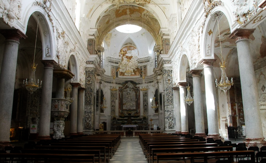 이 대성당은 4세기에 건립돼 17세기에 중건된 역사적 건축물로 바로크 양식으로 변경됐습니다. 세세한 조각은 보고 있으면 질리지 않습니다. 내부에는 높은 천장에서 뻗은 기둥들이 규칙적으로 배열되어 있고, 그 천장에는 파스텔 컬러를 바탕으로 한 아름다운 프레스코화가 그려져 있습니다. 압도당할 정도로 신성한 분위기가 감돌고 있습니다.